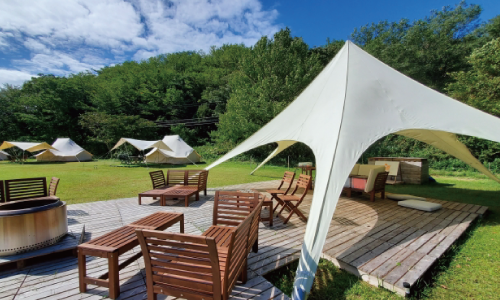 本プログラムは、グランピング施設で行う着座型謎解きチームビルディングを含む1泊2日の研修です。謎解き以外にも、日中はサウナや魚釣り・夜はBBQや焚き火などのアクティビティが盛り沢山。